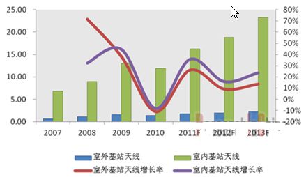 - 2011年中國室內基站天線市場容量同比增長35%