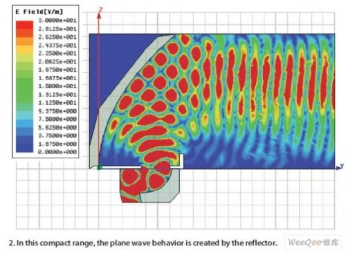 圖3:在緊縮測試場中由靜區上的反射麵產生的平麵波。
