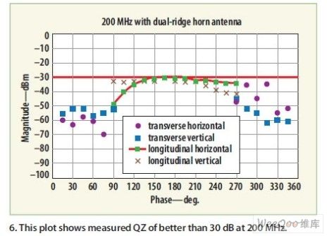 圖8:圖中測試采用一個對數周期天線來掃描QZ以測量反射率。