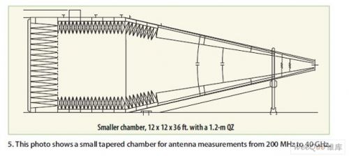 圖5:一個用於天線測試的200MHz至40GHz小型錐形暗室。
