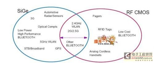 采用SiGe技ji術shu的de優you勢shi之zhi一yi是shi提ti高gao集ji成cheng度du。設she計ji人ren員yuan可ke在zai功gong率lv放fang大da器qi周zhou圍wei集ji成cheng更geng多duo的de控kong製zhi電dian路lu,這zhe樣yang,最zui終zhong的de器qi件jian就jiu更geng加jia節jie省sheng空kong間jian,從cong而er為wei集ji成cheng更geng多duo無wu線xian功gong能neng的de提ti供gong令ling了le潛qian力li。例li如ru,采cai用yong SiGe技術,設計人員就可以將功率放大器和 RF 電路集成在一起,卻不會影響功率放大器的效率,從而延長手機電池的壽命。目前,采用SiGe技術推出射頻功率放大器的公司包括:SiGe半導體公司、 Maxim、飛思卡爾、Atmel等公司。利用SiGe BiCMOS製造工藝進行代工的供應商主要是IBM以及台積電(TSMC)。