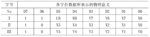 編碼的目的是將X和Y方向的位移改變量,連同鼠標按鍵的實時信息,按照標準的Microsoftshubiaoxieyiyaoqiudegeshijinxingbianma,yibianzuihoufasongdaozhujidexinxinenggoubeidiannaozhengqueshibie,congershidiannaonengzhengquechulifasonggeitadeweiyixinhao,laizhengquekongzhishubiaoguangbiaodeyidongdengdongzuo。biao1表示的即是標準的鼠標協議規定的三字節數據包格式,第1個字節記錄的是左右按鍵的信息和鼠標X,Y位移的最高2個字位的數據,按鍵按下時,對應的位置1,否則,置0;第2和第3個字節分別記錄X和Y方向位移的低6位數據。位移值的範圍取-127~+127,再大的位移改變量會自動溢出。