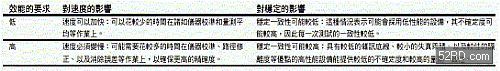 表2:以速度為首要的考量條件時,最重要的關係在於速度和穩定。