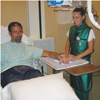 Mathis說,這些設備非常適合門診使用。“采用C形臂機後,患者可以站在或坐在成像接收器旁邊的椅子上,椅子可以迅速旋轉到90度,非常便於技術人員使用。”