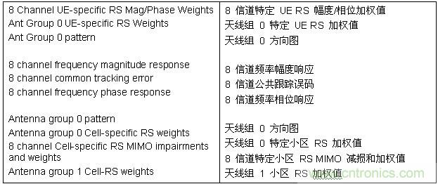 圖 9 中的表格顯示了對 8 個天線單元中的每 1 個進行測量所得到的特定 UE RS 加(jia)權(quan)值(zhi)。加(jia)權(quan)值(zhi)可(ke)以(yi)同(tong)時(shi)從(cong)幅(fu)度(du)和(he)相(xiang)位(wei)方(fang)麵(mian)進(jin)行(xing)測(ce)試(shi),最(zui)多(duo)可(ke)細(xi)化(hua)到(dao)每(mei)個(ge)用(yong)戶(hu)發(fa)射(she)相(xiang)關(guan)的(de)單(dan)個(ge)資(zi)源(yuan)塊(kuai)分(fen)配(pei)。測(ce)量(liang)應(ying)用(yong)軟(ruan)件(jian)還(hai)可(ke)提(ti)供(gong)每(mei)個(ge)空(kong)間(jian)多(duo)路(lu)複(fu)用(yong)層(ceng)的(de)單(dan)獨(du)特(te)定(ding)用(yong)戶(hu) RS 加權值跡線。小區 RS 映射提供了圖中的藍色曲線。