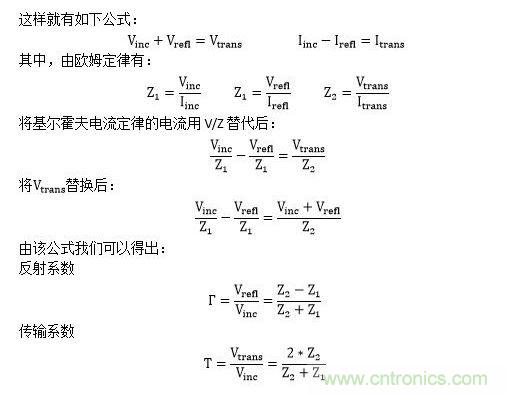 當信號穿越阻抗不連續的點時,會產生反射電壓與電流,從而使得分界麵兩邊的電壓和電流相等(基爾霍夫定律)。