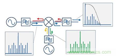 互(hu)調(tiao)抑(yi)製(zhi)一(yi)直(zhi)是(shi)衡(heng)量(liang)混(hun)頻(pin)器(qi)設(she)計(ji)的(de)目(mu)標(biao)之(zhi)一(yi)。基(ji)於(yu)當(dang)前(qian)半(ban)導(dao)體(ti)工(gong)業(ye)的(de)發(fa)達(da),我(wo)們(men)可(ke)以(yi)通(tong)過(guo)利(li)用(yong)高(gao)動(dong)態(tai)範(fan)圍(wei)的(de)場(chang)效(xiao)應(ying)管(guan)成(cheng)功(gong)實(shi)現(xian)了(le)不(bu)同(tong)水(shui)平(ping)的(de)互(hu)調(tiao)抑(yi)製(zhi)。然(ran)而(er),即(ji)使(shi)最(zui)好(hao)的(de)混(hun)頻(pin)器(qi)也(ye)會(hui)在(zai)它(ta)的(de)每(mei)個(ge)端(duan)口(kou)產(chan)生(sheng)一(yi)些(xie)互(hu)調(tiao)產(chan)物(wu),並(bing)且(qie)這(zhe)些(xie)互(hu)調(tiao)產(chan)物(wu)會(hui)成(cheng)為(wei)影(ying)響(xiang)到(dao)周(zhou)邊(bian)射(she)頻(pin)鏈(lian)路(lu)中(zhong)的(de)因(yin)素(su)。當(dang)傳(chuan)統(tong)濾(lv)波(bo)器(qi)要(yao)濾(lv)除(chu)這(zhe)些(xie)互(hu)調(tiao)產(chan)物(wu)時(shi),他(ta)們(men)會(hui)被(bei)完(wan)全(quan)反(fan)射(she)回(hui)到(dao)混(hun)頻(pin)器(qi),並(bing)與(yu)基(ji)波(bo)信(xin)號(hao)重(zhong)新(xin)合(he)成(cheng)而(er)產(chan)生(sheng)大(da)量(liang)的(de)假(jia)信(xin)號(hao)。這(zhe)些(xie)假(jia)信(xin)號(hao)會(hui)因(yin)為(wei)可(ke)能(neng)落(luo)在(zai)所(suo)需(xu)的(de)頻(pin)帶(dai)內(nei)而(er)通(tong)過(guo)濾(lv)波(bo)器(qi)輸(shu)出(chu)到(dao)中(zhong)頻(pin),進(jin)而(er)限(xian)製(zhi)了(le)整(zheng)個(ge)係(xi)統(tong)的(de)動(dong)態(tai)範(fan)圍(wei)。