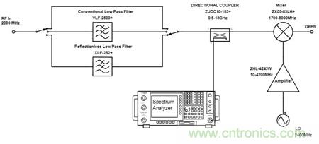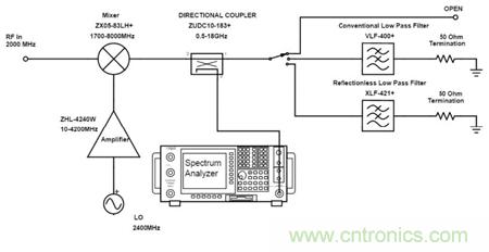 以下將組成測試電路對比傳統濾波器和無反射式濾波器分別配對相同混頻器的性能。