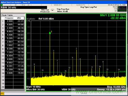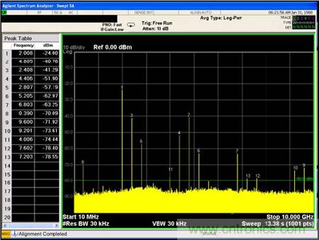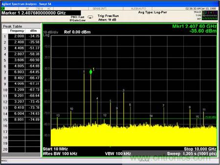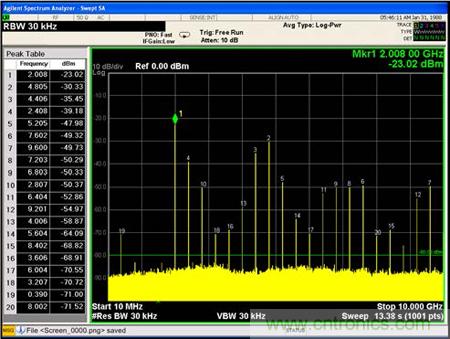 測試2:單輸入信號的輸入頻譜測試