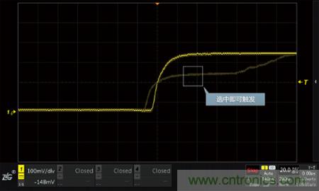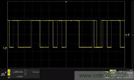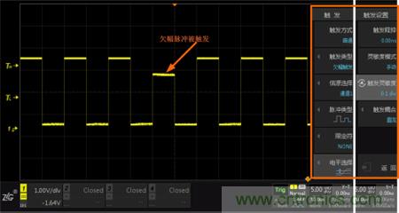 如下圖所示,設置了欠幅觸發及普通觸發後,欠幅脈衝信號被觸發,穩定的顯示在屏幕上。