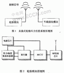 該係統的基本工作原理如下,把輪胎模塊裝置在輪胎內,壓力和溫度傳感器檢測輪胎內部當前的應力和溫度信息,獲得的模擬信號經過A/D變bian換huan器qi轉zhuan換huan成cheng數shu字zi信xin號hao,然ran後hou通tong過guo射she頻pin發fa射she器qi發fa送song出chu去qu。車che載zai接jie收shou模mo塊kuai裝zhuang置zhi在zai駕jia駛shi室shi內nei,射she頻pin接jie收shou器qi接jie收shou來lai自zi輪lun胎tai模mo塊kuai的de應ying力li和he溫wen度du信xin息xi,當dang輪lun胎tai壓ya力li過guo高gao或huo者zhe過guo低di時shi,通tong過guo顯xian示shi和he報bao警jing裝zhuang置zhi發fa出chu報bao警jing信xin息xi。