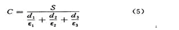 顯然,在電容器極板的遮蓋麵積S,兩極板之間的距離d,被測物體上下側至電極之間介質的介電常數ε1和ε3確定時,電容量的大小就和被測材料的厚度d2及介電常數ε2有關。如被測材料介電常數ε2已知,就可以測量等厚教材料的厚度d2;或者被測材料的厚度d2已知,就可測量其介電常數ε2。這就是電容式測厚儀和電容式介電常數測量儀的工作原理。