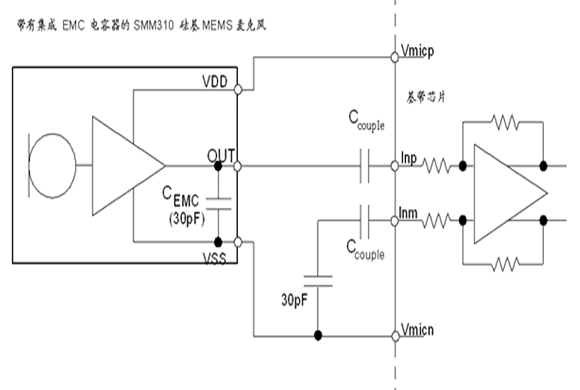 IC與駐極體電容器麥克風內信號處理電子元件並無差別,但這是一種已經投入使用的技術。在駐極體中,必須添加IC,而在MEMS麥克風中,隻需在IC上添加額外的專用功能即可。與ECM相比,這種額外功能的優點是使麥克風具有很高的電源抑製比。也就是說,如果電源電壓有波動,則會被有效抑製。