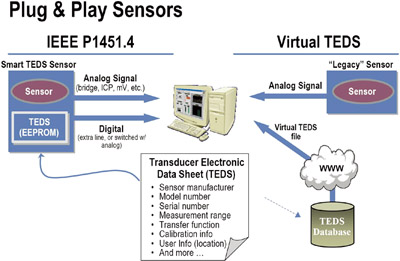 IEEE1451.3啟動處在多分支網絡中的傳感器的運行;於2003年通過的IEEE P1451.4規定與數字傳感器相關的數據(像傳感器的類別、型號、操作參數以及位置等)必須能夠以電子數據表的格式從整合在傳感器中的EEPROM(電可擦除隻讀存儲器)存儲器中讀取,這種數據表被稱為變換器電子數據表(TEDS-Transducer Electronic Data Sheet)。IEEE P1451.4標(biao)準(zhun)極(ji)大(da)地(di)簡(jian)化(hua)了(le)傳(chuan)感(gan)器(qi)的(de)布(bu)線(xian)以(yi)及(ji)更(geng)換(huan)故(gu)障(zhang)傳(chuan)感(gan)器(qi)的(de)問(wen)題(ti)。它(ta)同(tong)時(shi)也(ye)免(mian)除(chu)了(le)傳(chuan)感(gan)器(qi)在(zai)設(she)置(zhi)和(he)校(xiao)準(zhun)方(fang)麵(mian)的(de)人(ren)工(gong)幹(gan)預(yu),這(zhe)種(zhong)幹(gan)預(yu)即(ji)費(fei)時(shi)又(you)易(yi)出(chu)錯(cuo)。這(zhe)樣(yang)傳(chuan)感(gan)器(qi)就(jiu)成(cheng)了(le)即(ji)插(cha)即(ji)用(yong)的(de)裝(zhuang)置(zhi)。在(zai)國(guo)家(jia)儀(yi)器(qi)網(wang)站(zhan)(National Instruments’ web site)中有一個有效TEDS的數據庫,它包括了可以在IEEE P1451網絡中使用的各種老式的或沒有EEPROM的傳感器的專門資料。IEEE 1451.5標準仍在審核階段,它規定的是將TEDS連接到無線網絡中的必要條件,如與802.11、藍牙或ZigBee等的連接。最近又提出了IEEE 1451.6標準議案,它定義TEDS和CAN總線的接口。