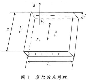 如圖1所示,一個N型半導體薄片,長度為L,寬度為S,厚度為d,在垂直於該半導體薄片平麵的方向上,施加磁感應強度為B的磁場,若在長度方向通以電流Iczeyundongdianheshoudaoluolunzilidezuoyong,zhengfudianhejiangfenbieyanchuizhiyucichanghedianliudefangxiangxiangdaotiliangduanyidong,bingjujizaidaotiliangduanxingchengyigewendingdediandongshiUH,這就是霍爾電動勢(或稱之為霍爾電壓),這種現象稱為霍爾效應。霍爾電壓的大小UH=RIB/d=KHICB,其中R為霍爾常數;KH為霍爾元件的乘積靈敏度。