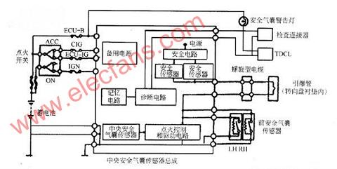 汽車行駛過程中,傳感器係統不斷向控製裝置發送速度變化(或加速度)信息,由氣囊控製模塊(ECU)對這些信息加以分析判斷,如果所測的加速度、速度變化量或其它指標超過預定值(即真正發生了碰撞),則囊控製模塊向氣體發體發生器發出點火命令。