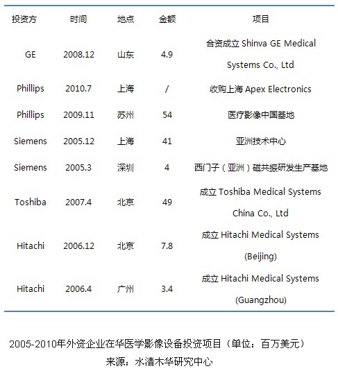 對外資企業來說,由於歐美日等成熟市場趨於飽和,中、印yin等deng飛fei速su增zeng長chang的de新xin興xing市shi場chang將jiang是shi未wei來lai增zeng長chang動dong力li。外wai資zi企qi業ye一yi方fang麵mian在zai中zhong國guo加jia大da投tou資zi並bing購gou力li度du,建jian設she生sheng產chan研yan發fa基ji地di,提ti高gao產chan能neng,整zheng合he全quan球qiu供gong應ying鏈lian;另一方麵根據中國市場的需求推出普及型產品。針對中國醫改重點投入基層醫療機構,GE、西門子、飛利浦等都以基層醫療市場戰略積極應對,如GE整合新華醫療渠道、西門子發展“SMART”戰略等。