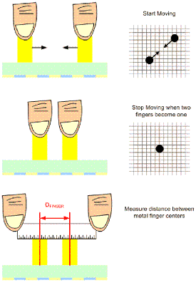 手指間距:手指間距定義為,當觸摸屏控製器測量兩隻手指的位置時,兩隻手指中心點之間在屏幕上的最短距離。手指間距測量方法(圖2),是(shi)將(jiang)兩(liang)個(ge)模(mo)擬(ni)或(huo)機(ji)械(xie)手(shou)指(zhi)置(zhi)於(yu)麵(mian)板(ban)上(shang),然(ran)後(hou)逐(zhu)漸(jian)拉(la)近(jin)兩(liang)隻(zhi)手(shou)指(zhi)的(de)距(ju)離(li),直(zhi)到(dao)係(xi)統(tong)測(ce)到(dao)兩(liang)隻(zhi)手(shou)指(zhi)為(wei)一(yi)隻(zhi)手(shou)指(zhi)為(wei)止(zhi)。有(you)些(xie)觸(chu)摸(mo)屏(ping)供(gong)貨(huo)商(shang)的(de)手(shou)指(zhi)間(jian)距(ju)是(shi)指(zhi)邊(bian)緣(yuan)至(zhi)邊(bian)緣(yuan)的(de)距(ju)離(li),有(you)些(xie)則(ze)是(shi)中(zhong)心(xin)點(dian)之(zhi)間(jian)的(de)距(ju)離(li)。10毫米機械手指的10毫米手指間距,表明有多隻手指觸碰到屏幕,或是手指之間的距離為10haomi,shijizhuangkuangqujueyuchukongkongzhiqideguigedingyi。ruguomeiyoulianghaodeshouzhijianju,jiuwufashejichuduodianchukongjiejuefangan。duiyufangzhenjianpaneryan,shouzhijianjuyouqizhongyao,yinweiyibanzaishiyongfangzhenjianpanshi,shouzhizaipingmushangdejianjutongchanghenduan。