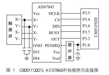ADS7843是一種四線式觸摸屏控製器,目前較多應用於電阻式觸摸屏輸入係統中。盡管有很多相關的典型應用和應用注意事項,但是在實際使用過程中仍然會遇到一些問題。應用在通用的單片機中所出現的問題及解決方法,已有一些介紹。本文是對基於高速、流水線結構的 C8051的觸摸屏控製係統設計中所遇到的問題進行分析處理,並給出了解決方法。
