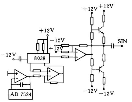 控製器的激勵信號源如圖3 所示。信號由函數信號發生器8038 產生,它能夠輸出正弦波和方波,正弦波用作觸摸屏的激勵信號。單片機通過 8 位 D/ A 轉換器可控製8038 的振蕩頻率,一般控製在200 kHz 左右,以避開計算機顯示器掃描信號產生的幹擾。同時,由8038 產生的方波信號提供給模擬解調器,作為解調信號參考源。由於8038輸出的正弦波信號功率有限,為此在8038的正弦波信號輸出端增加了功率放大電路。