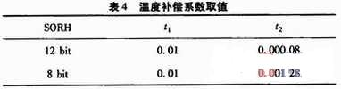 式中,RHtrue為經過線性補償和溫度補償後的濕度值;T為測試濕度值時的溫度;t1和t2為溫度補償係數,取值如表4所示。