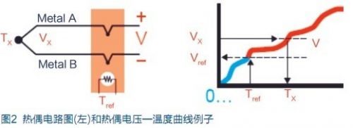 不過,電壓和溫度間是如圖2所示的非線性關係,溫度由於電壓和溫度是非線性關係,因此需要為參考溫度(Tref)作第二次測量,並利用測試設備軟件和∕或硬件在儀器內部處理電壓-溫度變換,以最終獲得熱偶溫度(Tx)。Agilent34970A和34980A數據采集器均有內置的測量了運算能力。