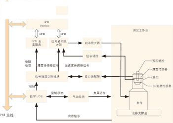 其中,PXI控製器是整個測試係統的控製核心,能夠通過GPIB總線與LCR表、高阻表、信號鎖相放大器等儀器進行通信;PXI數字I/O板卡主要用於係統的狀態反饋和動作控製;振台為爆震傳感器的靈敏度、線性度提供一個標準的振動測試環境,本係統采用的是定製的壓電類振台,輸出頻率範圍為3~50kHz,1kg負載下加速度最高可達250g的振動;LCR表、高阻表主要用於傳感器電阻、絕緣電阻、電容等參數的檢測;信號通道切換模塊主要為電阻電容測、絕緣電阻、靈敏度的測試任務建立相應的信號測量通道。