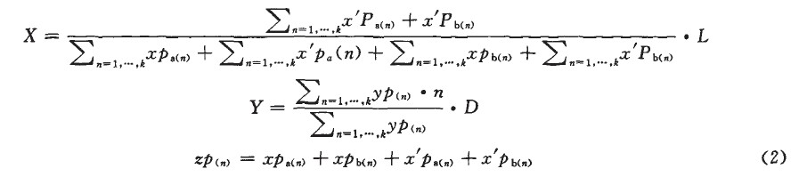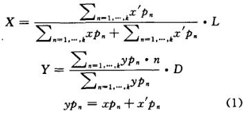 其中Cn代表第九組電極的Cp。n代表電極的組數,L是電極寬,D是一組電極的高。其X坐標的計算是通過左側通道的感應值加和與右側通道感應值加和的比例來計算的。y是通過同一行的左右兩通道感應值的加和與上下行的感應值加和的比例來計算的。具體計算方法由式(1)確定: