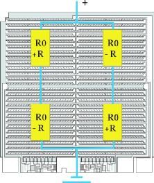 現代傳感器係統主要由兩個元件組成 —基本傳感器和信號處理專用集成電路 (ASIC)(圖 1)。現已證明,後來由 Lord Klevin 於 1857 年nian發fa現xian的de各ge向xiang異yi性xing磁ci阻zu效xiao應ying特te別bie適shi用yong於yu檢jian測ce磁ci場chang。首shou先xian考kao慮lv通tong常chang具ju有you多duo種zhong磁ci疇chou結jie構gou的de鐵tie磁ci性xing材cai料liao。這zhe些xie稱cheng之zhi為wei韋wei斯si磁ci疇chou的de結jie構gou,其qi內nei部bu磁ci化hua的de方fang向xiang彼bi此ci不bu同tong。如ru果guo將jiang這zhe種zhong材cai料liao平ping鋪pu為wei一yi薄bo層ceng,那na麼me磁ci化hua矢shi量liang處chu於yu材cai料liao層ceng平ping麵mian方fang向xiang。另ling外wai,可ke較jiao精jing確que地di假jia設she隻zhi存cun在zai一yi個ge磁ci疇chou。當dang這zhe種zhong元yuan件jian暴bao露lu於yu外wai部bu磁ci場chang中zhong時shi,後hou者zhe會hui改gai變bian內nei部bu磁ci化hua矢shi量liang的de方fang向xiang。如ru果guo同tong時shi一yi股gu電dian流liu通tong過guo該gai元yuan件jian,就jiu會hui產chan生sheng電dian阻zu(圖 2),zhequjueyudianliuhecihuazhijiandejiaodu。dangdianliuhecihuafangxiangbicichengzhijiaoshi,dianzuzuixiao,dangerzhepingxingshi,dianzuzuida。dianzubianhuadedaxiaoqujueyucailiao。tiecixingcailiaodexingzhiyejuedingduiwendudeyilaixing。dianzuzuidabianhuawei 2.2% 並且對溫度變化反應良好的最佳合金是 81% 的鎳和 19% 的鐵組成的合金。恩智浦所有傳感器係統中的基本傳感器都采用這種強磁鐵鎳合金。在惠斯登電橋電路中單獨配置幾個 AMR 電阻,以增強輸出信號並改善溫度反應特性。此電路也可在製造過程中進行微調。圖 3 顯示如何在裸片上配置 AMR 元件。