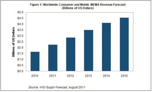 據IHS公司的消費與移動MEMS市場研究報告,微機電係統(MEMS)市場中最大和最有活力的領域是消費與移動器件,通過積極開拓智能手機和平板應用,2011年MEMS市場將再度實現創紀錄的增長率。