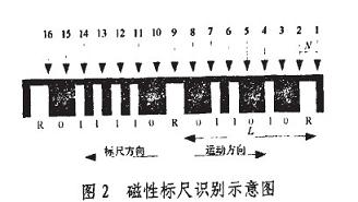 根據磁敏傳感原理,“凹槽”和“凸槽“會導致不同的磁場強度,從而使磁敏元件相應地輸出不同的電半信號“0”或“1”,形成數值碼,用於確定位移的粗讀值;而標誌位R碼寬兩倍於碼元“1”寬度的特點,使得識別後的序列出現具有固定特征的標識碼,它用於精讀數。