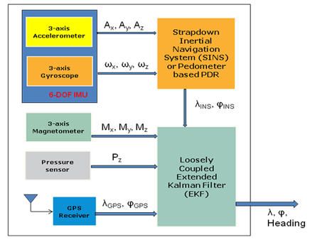 當天線沒有被遮擋時,現代的GPS接收器的絕對定位精度是3米到20米,這個參數不會在一段時期後發生漂移。基於MEMS傳感器的捷聯式慣性導航係統(SINS) 可(ke)在(zai)很(hen)短(duan)的(de)時(shi)間(jian)內(nei)提(ti)供(gong)精(jing)確(que)的(de)定(ding)位(wei)信(xin)息(xi),但(dan)是(shi),根(gen)據(ju)運(yun)動(dong)傳(chuan)感(gan)器(qi)的(de)性(xing)能(neng),這(zhe)種(zhong)導(dao)航(hang)係(xi)統(tong)在(zai)使(shi)用(yong)一(yi)段(duan)時(shi)間(jian)後(hou)很(hen)快(kuai)就(jiu)會(hui)發(fa)生(sheng)精(jing)度(du)漂(piao)移(yi)現(xian)象(xiang)。行(xing)人(ren)航(hang)位(wei)推(tui)算(suan)係(xi)統(tong)(PDR)是shi一yi個ge根gen據ju步bu長chang和he方fang位wei計ji算suan從cong室shi內nei已yi知zhi初chu始shi位wei置zhi開kai始shi的de行xing走zou距ju離li的de相xiang對dui導dao航hang係xi統tong,雖sui然ran定ding位wei精jing度du不bu會hui隨sui時shi間jian推tui移yi而er發fa生sheng漂piao移yi,但dan是shi需xu要yao在zai受shou磁ci力li幹gan擾rao的de環huan境jing內nei保bao持chi航hang向xiang精jing度du,此ci外wai,GPS需要對步長進行校準,才能達到可以接受的定位精度。