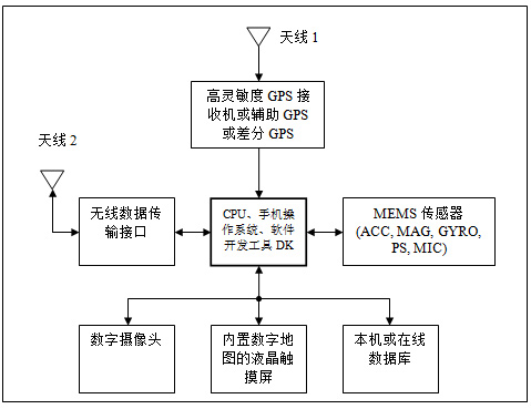•高靈敏度GPS接收器或A-GPS或DGPS:當捕獲到有效的衛星信號時,這些模塊用於確定用戶當前的經緯度位置。多年來人們一直在研究提高GPS接收機在室內和高樓林立的地區的接收靈敏度和定位精度,因為在這類地區衛星信號變弱,並發生多信道幹擾錯誤。