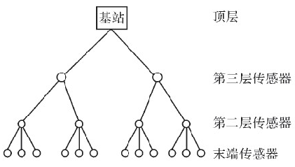 該網絡體係結構有4層(ceng)。最(zui)底(di)層(ceng)由(you)所(suo)有(you)的(de)末(mo)端(duan)傳(chuan)感(gan)器(qi)組(zu)成(cheng),這(zhe)些(xie)末(mo)端(duan)傳(chuan)感(gan)器(qi)從(cong)周(zhou)圍(wei)環(huan)境(jing)中(zhong)收(shou)集(ji)數(shu)據(ju)。第(di)二(er)層(ceng)和(he)第(di)三(san)層(ceng)由(you)監(jian)控(kong)節(jie)點(dian)組(zu)成(cheng),第(di)二(er)層(ceng)傳(chuan)感(gan)器(qi)監(jian)控(kong)末(mo)端(duan)傳(chuan)感(gan)器(qi)的(de)通(tong)信(xin)模(mo)式(shi);第三層傳感器監控第二層傳感器的行為。第三層傳感器布置時要求:每個第三層傳感器能夠監控2個第二層傳感器間的通信。最後,頂層傳感器就是基站,通常人工操作。