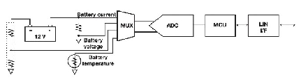 電池電壓通過一個直接從電池正極分接出來的阻性衰減器來檢測。為檢測電流,將一個檢測電阻(12V應用一般使用100mΩ)放fang在zai電dian池chi負fu極ji與yu地di之zhi間jian。在zai這zhe種zhong配pei置zhi中zhong,汽qi車che的de金jin屬shu底di盤pan一yi般ban為wei地di,檢jian測ce電dian阻zu安an裝zhuang在zai電dian池chi的de電dian流liu回hui路lu中zhong。在zai其qi它ta配pei置zhi中zhong,電dian池chi的de負fu極ji是shi地di。對dui於yuSoH 計算,還必須檢測電池的溫度。