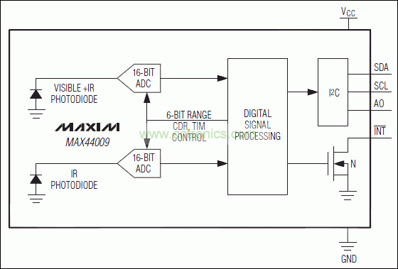 MAX44009:業內最低功耗的內置ADC環境光傳感器