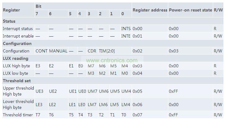 當光積分時間為100ms的倍數(如:100/200/400/800ms)時,這些環境光傳感器能夠很好地抑製50Hz/60Hzzaoshengganrao。raner,duoshuqingkuangxia,henduoyingyongxuyaoyigezhuanhuanwanchengxinhao,zaikekaoduquhuanjingguangchuanganqixinxishibimianbubiyaodeyanchi。benyingyongbijizhuyaojieshaoruheshiyongqijiandezhongduanyinjiaotigongzhuanhuanwanchengzhishi,xiangxishuomingI²C寄存器的設置方法。
