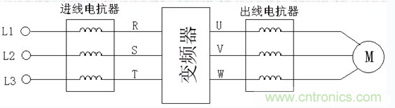 變頻器輸出側安裝輸出電抗器,減少電纜的電磁輻射和位移電流;