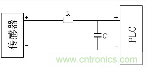傳感器到PLC(或其它控製器)去的弱電信號,可采用阻容濾波的方法減少幹擾,如下圖所示。