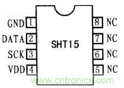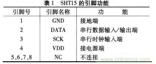 SHT15的引腳比較少.使用方便。其引腳排列如圖2所示。引腳功能如表1所示。SHT15型智能傳感器的相對濕度測量範圍是0~100%。分辨率達0.03%,最高精度為+2%RH,溫度測量範圍是—40℃一十123.8℃.分辨率為0.1℃.電源電壓範圍是+2.5V一+5.5V.響應時間小於3s。