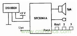 綜上所述,整體硬件電路組成如圖1所示,由SCPE061A單dan片pian機ji實shi現xian係xi統tong整zheng體ti控kong製zhi並bing實shi現xian語yu音yin或huo鍵jian盤pan編bian程cheng與yu語yu音yin播bo報bao,係xi統tong可ke通tong過guo通tong用yong異yi步bu串chuan行xing接jie口kou實shi現xian聯lian網wang功gong能neng,在zai不bu需xu要yao聯lian網wang的de場chang合he,溫wen度du計ji也ye可ke以yi單dan獨du使shi用yong,實shi現xian了le係xi統tong的de可ke裁cai剪jian,DSl8B20用來實現溫度檢測。