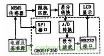 設計中采用C8051F350的24位Sigma-Delta模/數轉換器作係統信號的模數轉換,SPI接口作MEMS傾角傳感器的溫度采集,以實現對傳感器的溫度補償,UART作串行LED顯示接口。為保證模/數轉換器工作穩定,采用外部基準源。