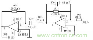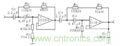 0.7 Hz的高通濾波器用來檢測心跳信號,這裏采用2個二階壓控高通濾波器串聯形成的四階高通濾波器來構成O.7Hz高通濾波器,其電路如圖6所示。