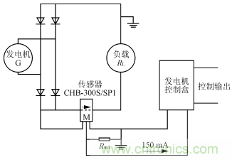 在某型地麵車輛上裝備了一套獨立的大功率發電係統,該發電係統設計選用了CHB-300Sxingbihuanhuoerdianliuchuanganqizuoweixitongdianliujiancebujian,tongguoduichuanganqideshuchuxinhaojinxingchuli,shedingxianliugongzuodian,quebaofadianxitongdeshuchugonglvbugaoyufadianjideedinggonglv。bihuanhuoerdianliuchuanganqiCHB-300S的應用,很好地實現了上述應用目的。如圖3所示,發電機G輸出正端彙流母線穿過CHB-300S/SP1的原邊電流穿孔,由傳感器CHB-300S/SP1檢測發電機的輸出電流,傳感器的輸出IM與(yu)發(fa)電(dian)機(ji)控(kong)製(zhi)盒(he)相(xiang)連(lian),由(you)發(fa)電(dian)機(ji)控(kong)製(zhi)盒(he)設(she)定(ding)發(fa)電(dian)機(ji)的(de)輸(shu)出(chu)電(dian)流(liu)控(kong)製(zhi)點(dian),依(yi)據(ju)此(ci)信(xin)號(hao),對(dui)發(fa)電(dian)機(ji)的(de)輸(shu)出(chu)電(dian)流(liu)加(jia)以(yi)限(xian)製(zhi),避(bi)免(mian)發(fa)電(dian)機(ji)因(yin)輸(shu)出(chu)功(gong)率(lv)過(guo)高(gao)而(er)發(fa)生(sheng)故(gu)障(zhang)或(huo)損(sun)壞(huai),從(cong)而(er)保(bao)證(zheng)發(fa)電(dian)係(xi)統(tong)正(zheng)常(chang)工(gong)作(zuo)。