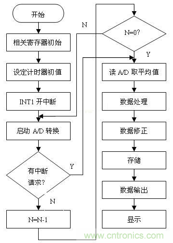 檢測處理程序流程框圖如圖4所示。采用MCS係列彙編語言〔5〕編程,由於有硬件設計的保證,使得整個係統既可以工作在循環查詢的方式,也可工作在中斷管理的方式。
