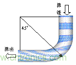 流體在管道中流動,在流經彎管時,流體類似於流過一個整流器,由於彎曲管壁的導流作用,在進入彎管前2D左(zuo)右(you)流(liu)體(ti)內(nei)側(ce)被(bei)加(jia)速(su),而(er)流(liu)體(ti)外(wai)側(ce)被(bei)減(jian)速(su),直(zhi)至(zhi)進(jin)入(ru)彎(wan)管(guan)流(liu)體(ti)的(de)流(liu)速(su)形(xing)式(shi)被(bei)整(zheng)流(liu)成(cheng)近(jin)似(si)於(yu)自(zi)由(you)旋(xuan)流(liu)理(li)論(lun)描(miao)述(shu)的(de)梯(ti)形(xing)速(su)度(du)流(liu)動(dong)模(mo)式(shi),且(qie)在(zai)彎(wan)管(guan)45°截麵處達到最大,這個過程將持續在整個彎管中。在彎管出口處及下遊2D範圍內,流速模型的變化過程是進口變化的反過程。彎管在45°截麵各質點流速分布如圖1所示。