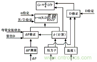 係(xi)統(tong)是(shi)否(fou)配(pei)置(zhi)壓(ya)力(li)和(he)溫(wen)度(du)變(bian)送(song)器(qi),要(yao)根(gen)據(ju)具(ju)體(ti)測(ce)量(liang)對(dui)象(xiang)來(lai)決(jue)定(ding),對(dui)於(yu)測(ce)量(liang)蒸(zheng)汽(qi)或(huo)其(qi)它(ta)氣(qi)體(ti)介(jie)質(zhi)的(de)係(xi)統(tong),原(yuan)則(ze)上(shang)必(bi)須(xu)配(pei)置(zhi)溫(wen)度(du)和(he)壓(ya)力(li)變(bian)送(song)器(qi),因(yin)為(wei)在(zai)測(ce)量(liang)彎(wan)管(guan)傳(chuan)感(gan)器(qi)差(cha)壓(ya)的(de)同(tong)時(shi),必(bi)須(xu)測(ce)量(liang)介(jie)質(zhi)的(de)溫(wen)度(du)、壓力值,以便能對蒸汽或氣體進行必要的實時溫、壓補償。見圖3。