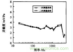 為檢測測量係統的重複性,實驗對1#傳感器進行了重複測量,圖3示出2次測量的靈敏度變化曲線。