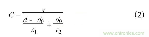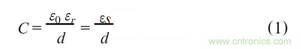 首(shou)先(xian)其(qi)靈(ling)敏(min)度(du)的(de)問(wen)題(ti)是(shi)我(wo)們(men)經(jing)常(chang)會(hui)遇(yu)到(dao)的(de),這(zhe)裏(li)我(wo)們(men)可(ke)以(yi)看(kan)到(dao)由(you)兩(liang)平(ping)行(xing)板(ban)組(zu)成(cheng)的(de)一(yi)個(ge)電(dian)容(rong)器(qi),若(ruo)忽(hu)略(lve)其(qi)邊(bian)緣(yuan)效(xiao)應(ying),其(qi)電(dian)容(rong)量(liang)可(ke)用(yong)下(xia)式(shi)表(biao)示(shi):