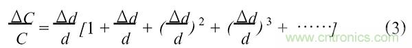 由上式可知變間隙式電容傳感器相對輸出與輸入為非線性關係。由於Δd/d<<1,工程上常采用以下兩種近似處理方法的辦法: